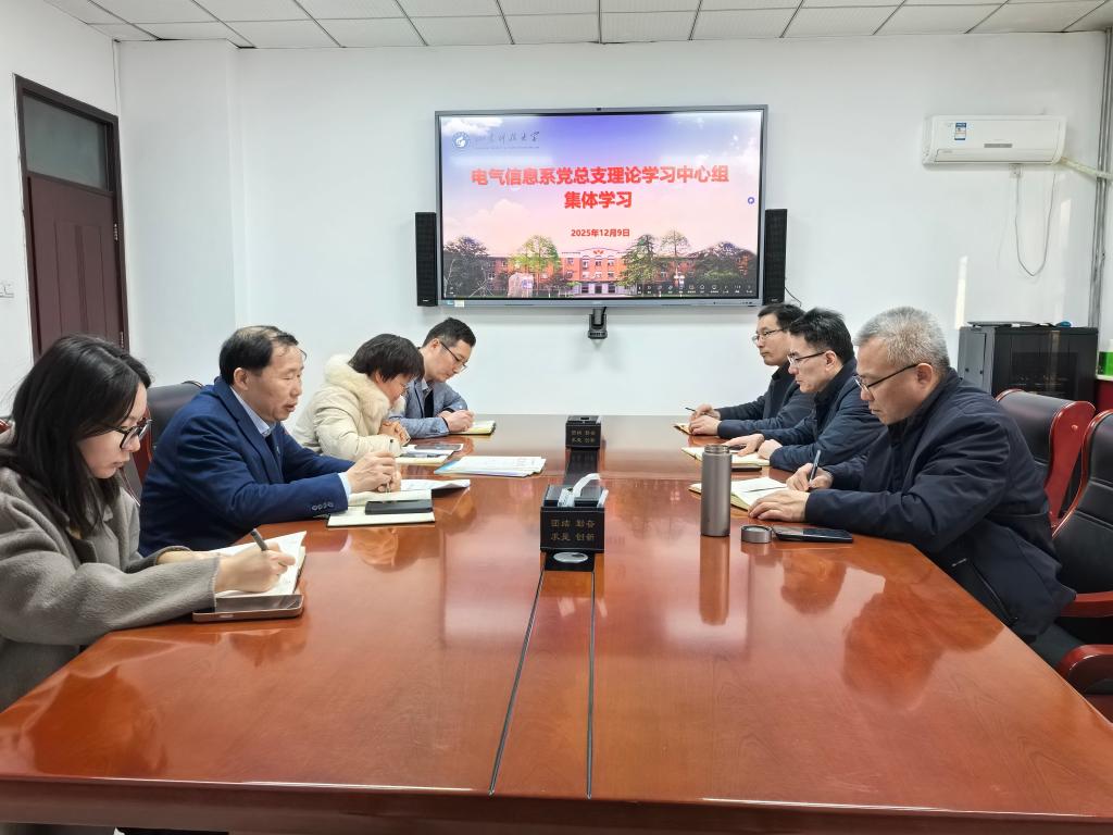 12月9日,电气信息系党总支理论学习中心组在第一会议室开展集体学习。党总支书记毛庆东主持学习,党总支理论学习中心组成员参加学习。
