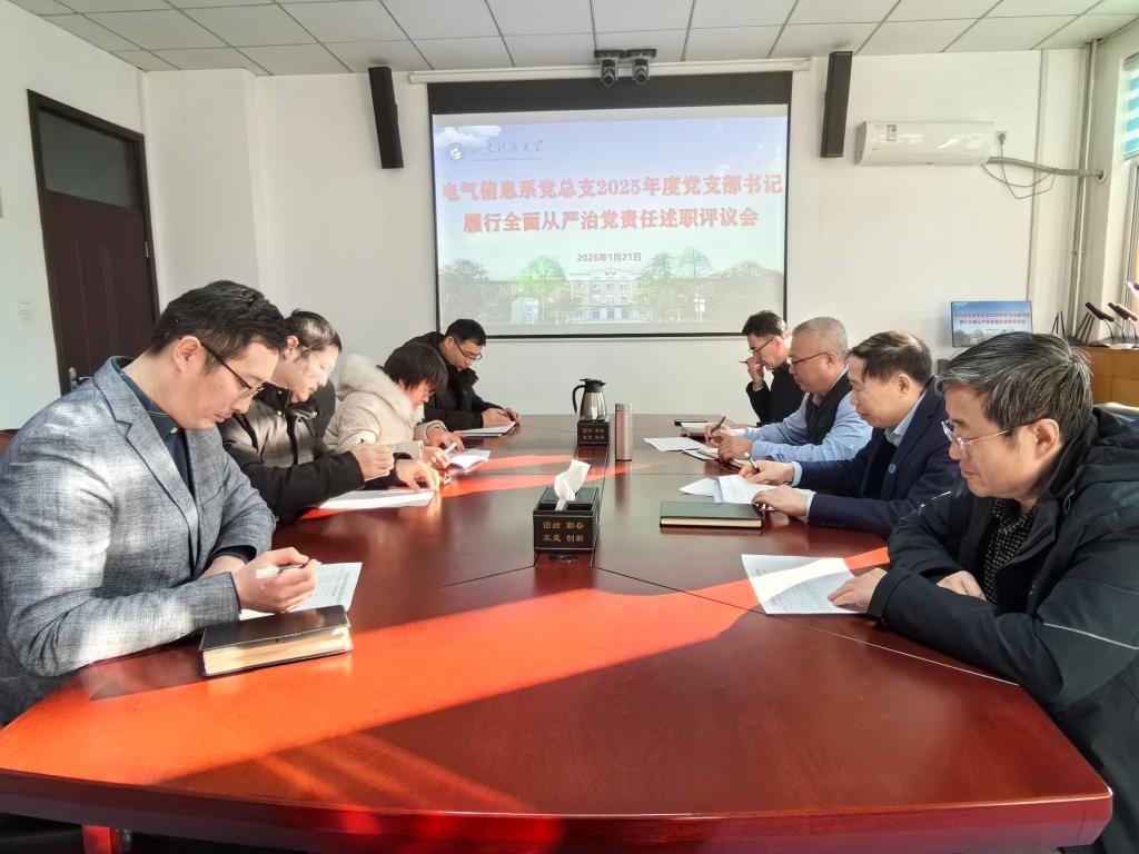 1月21日,电气信息系党总支在第二会议室召开2025年度基层党支部书记全面从严治党述责述廉述职评议会。电气信息系党总支书记毛庆东主持评议会,党总支班子成员、支部书记、党员代表参加评议会。