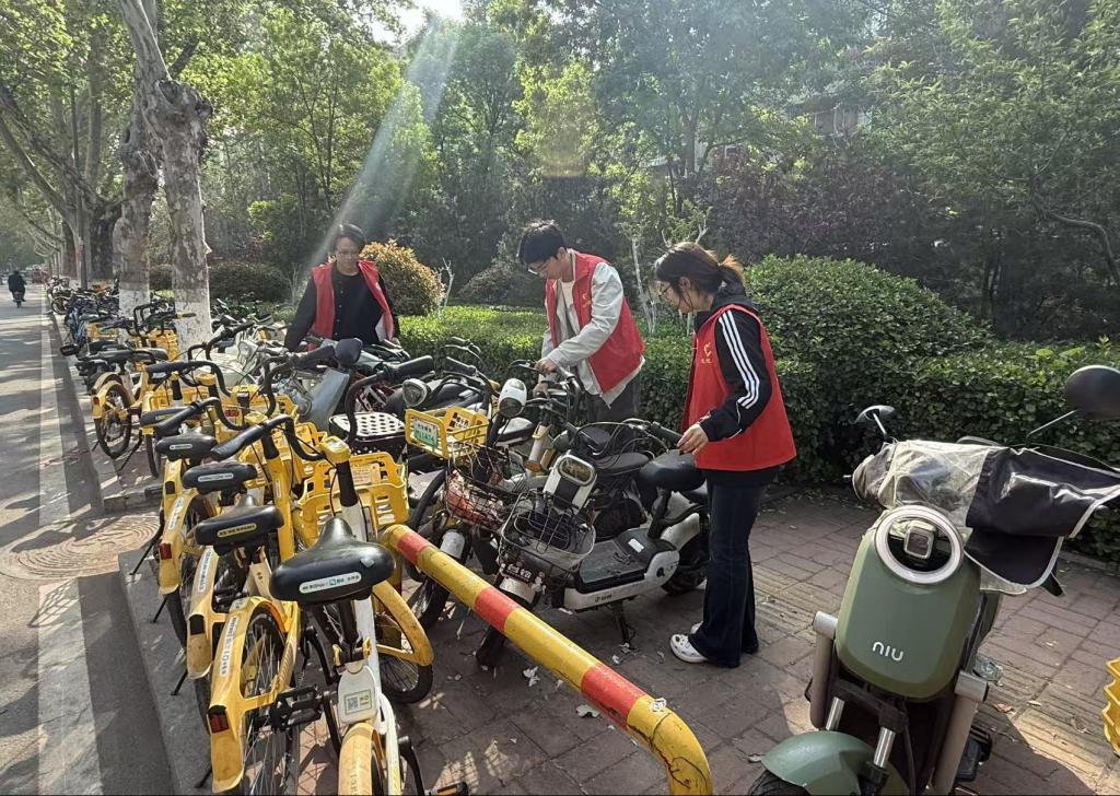 此外,入党积极分子还认真整理校园及周边乱停乱放的自行车。面对杂乱无序的车辆,积极分子主动作为,美化校园周边环境,担当践行服务宗旨,展现出甘于奉献、服务同学的初心。