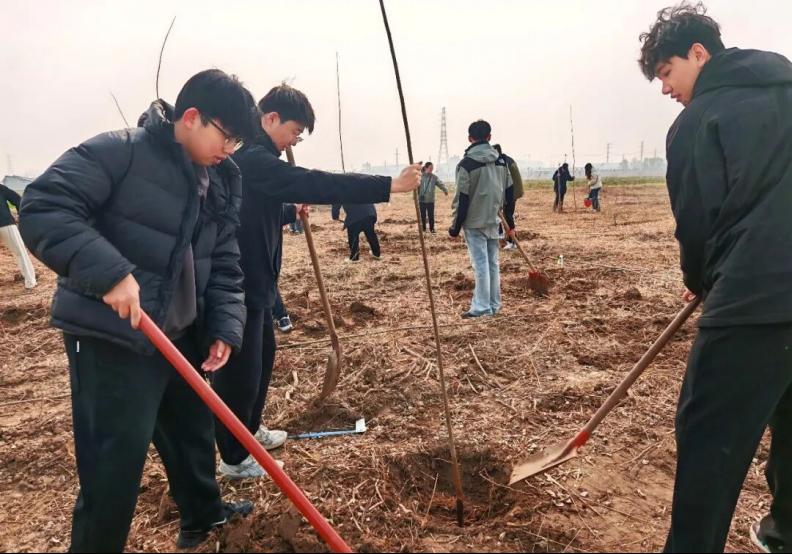 植树活动中,入党积极分子分工协作、配合默契,完成扶苗、培土、压实等植树工序。经过一番忙碌,一株株新栽的树苗在黄河畔迎风挺立,错落有致的绿意为春日的河岸增添了勃勃生机,也承载着全体志愿者守护母亲河、共建绿色家园的坚定信念与美好愿景。
